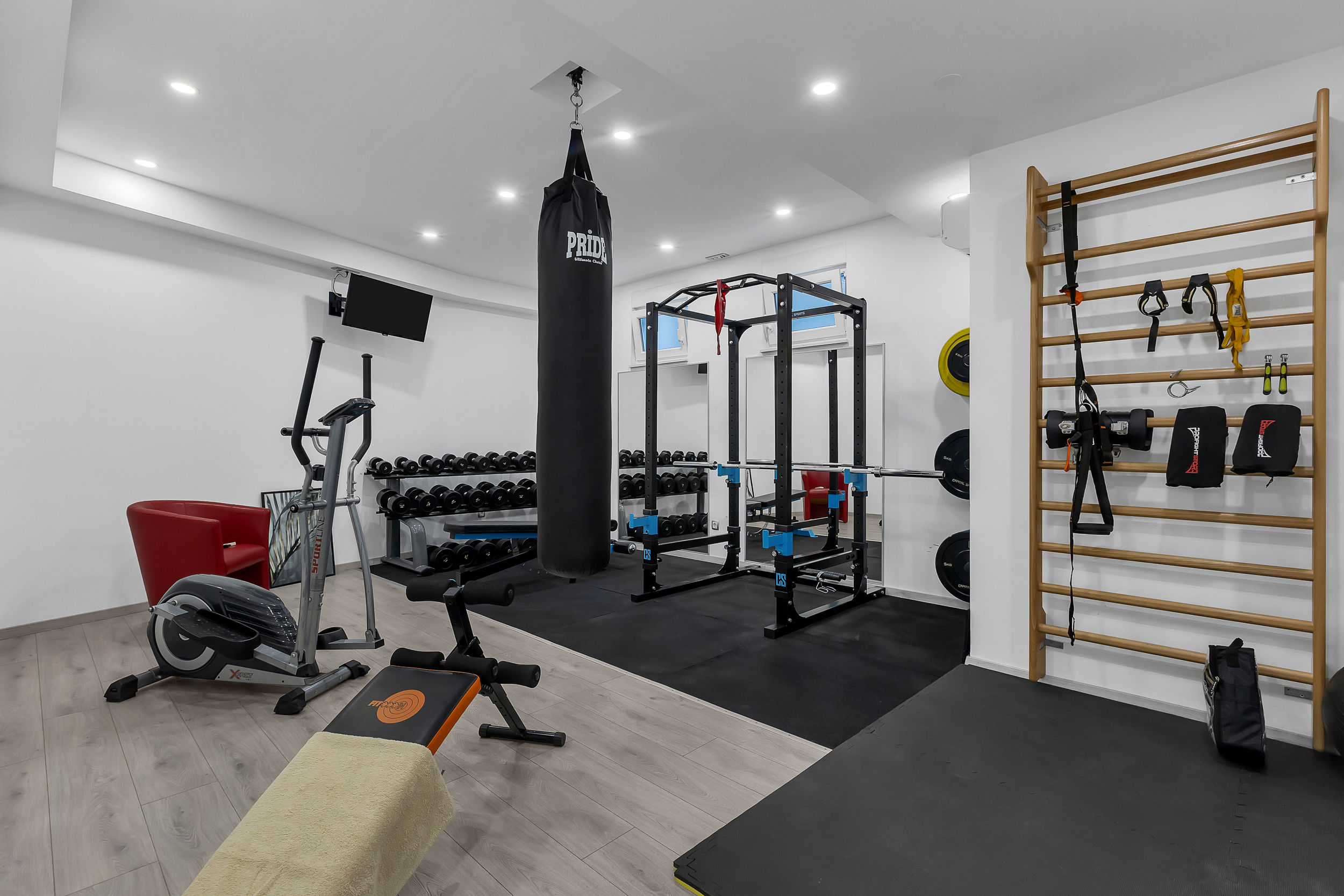 Čak i tijekom odmora možete održavati kondiciju. Teretana, smještena u podrumu, opremljena je Orbitrekom, boksačkom vrećom, olimpijskom šipkom s utezima, jednoručnim utezima i švedskim ljestvama – idealno za raznovrsne treninge.
